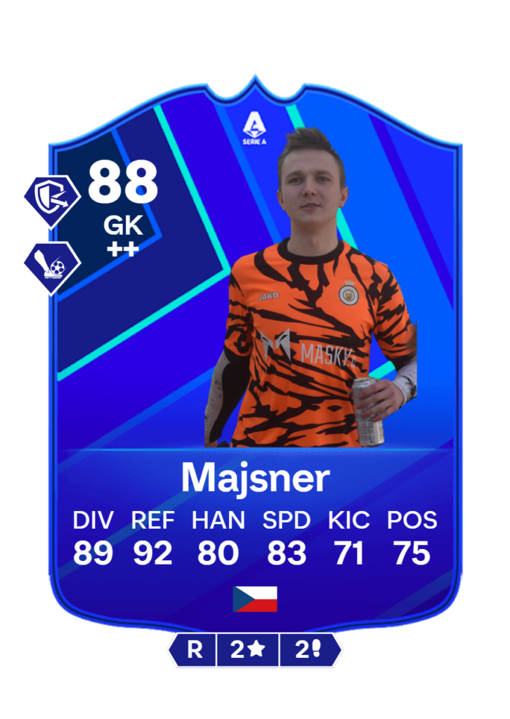Brankář Majsner patří mezi klíčové postavy týmu. Se svým ratingem 88 ukazuje, že se na něj může Hladinka spolehnout v každé situaci.