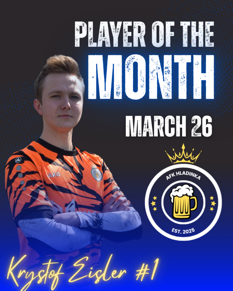 AFK Hladinka s potěšením oznamuje, že hráčem měsíce se stal brankář Kryštof Eisler. Toto ocenění si vysloužil díky svým konzistentním výkonům, nasazení a důležitým zákrokům, kterými v uplynulém období výrazně pomohl týmu.